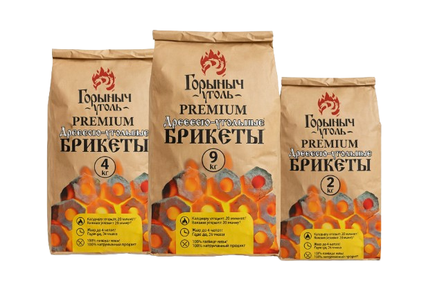 Натуральные прессованные брикеты для мангала и гриля: быстрый розжиг (≈20 минут), ровномерный жар и длительное горение 3–4 часа. Доступны фасовки 2 / 3 / 4 / 5 / 9 кг.